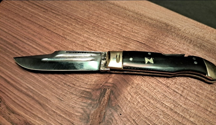 چاقوی پشت ضامن استاد بابایی کار دست ساز زنجان کیفیتی که پشت آن چندین سال تجربه استاد نهفته است با کیفیت درجه یک تیغه فولاد فنر و دسته فیبر آلمانی با باربند برنجی ،مقاومت بالا و با داوم و تیز چاقوی ماداوم العمر خوش دست و خوش ساخت محصول دست ساز زنجان همراهی همیشگی برای شما