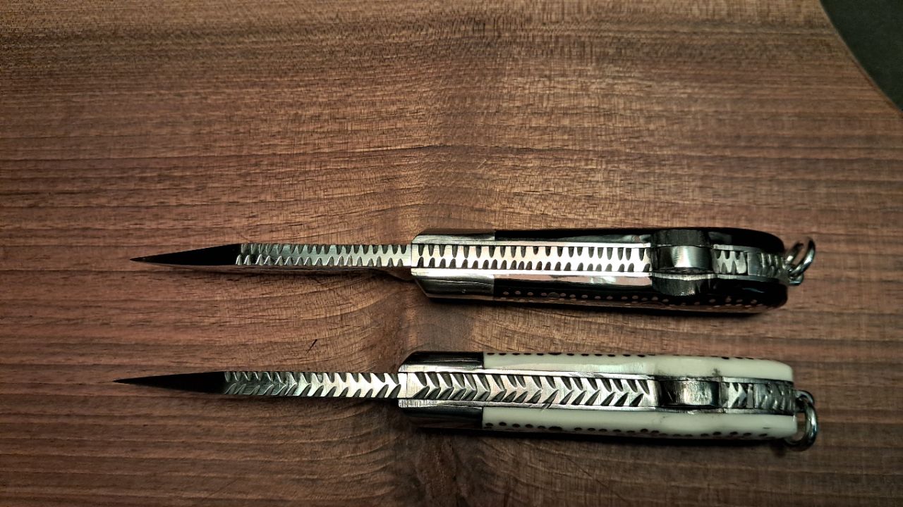 + موارد بیشترچاقو بابا مس کوب شده، کار دست ساز استاد بابا که شهرت بسیاری میان مردم دارد به دلیل جنس مرغوب آن جنس تیغه آن سوهان فولاد هست که آهن بر و بسیار تیز و مقاوم است کار کاملا دست ساز و پشت تیغه جودان کاری شده و روی دسته مس کوبی شده دسته استخوانی انتهای آن حلقه ای برای آویز کردن آن تعبیه شده کاربرد آن بیشتر کلکسیونی و روزمره است. انتخاب افراد خاص پسند 👌